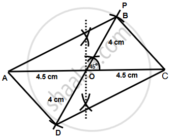 Construct a parallelogram ABCD, when AC = 9 cm, BD = 8 cm and ∠BOC = 45°.