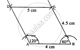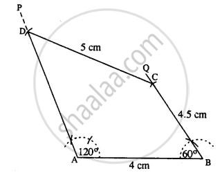 Construct a quadrilateral ABCD in which ; ∠A = 120°, ∠B = 60°, AB = 4 cm, BC = 4.5 cm and CD = 5 cm.