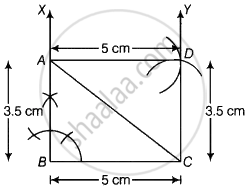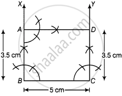 6. Join AD and CD. Thus, ABCD is the required rectangle with adjacent sides of length 5 cm and 3.5 cm.