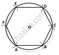 2. Taking any point A on the circumference of the circle as the centre, draw arcs of same radii (i.e. 2.5 cm) which cut the circumference at B and F.
