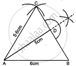 (2) Using compass, taking A and B as centre draw arcs of 5 cm and 5.6 cm respectively, which cut each other at C.