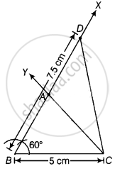 - Cut a line segment BD equal to AB + AC = 7.5 cm from the ray BX.