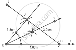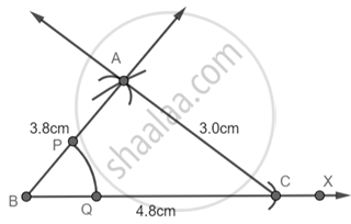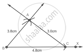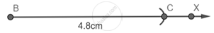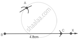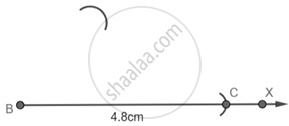 Step 1: Draw a Ray BX and with B as center and radius 4.8 cm cut an arc on the line and name it as C.
