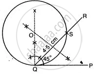 Construct an angle PQR = 45°. Mark a point S on QR such that QS = 4.5 cm. Construct a circle to touch PQ at Q and also to pass through S.