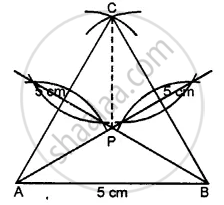 (ii) With centres A and B and radius 5 cm each, draw two arcs intersecting each other at C.