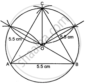 Construct an equilateral triangle ABC such that it's one side = 5.5 cm. Construct a circumcircle to this triangle.
