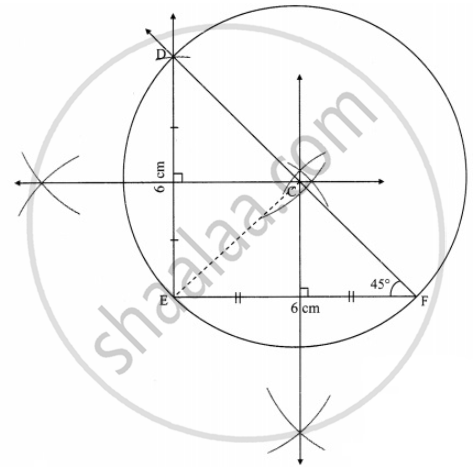 Construct ΔDEF such that DE = EF = 6 cm, ∠F = 45° and constructs its circumcircle.