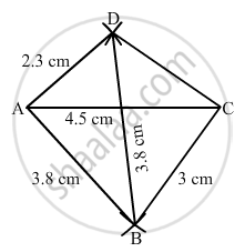 Construct a quadrilateral ABCD in which AB = 3.8 cm, BC = 3.0 cm, AD = 2.3 cm, AC = 4.5 cm and BD = 3.8 cm.