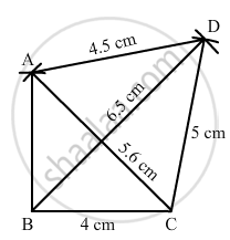 Construct a quadrilateral ABCD in which BC = 4 cm, CA = 5.6 cm, AD = 4.5 cm, CD = 5 cm and BD = 6.5 cm.