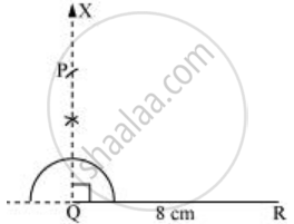 3) Taking R as centre, draw an arc of 10 cm radius to intersect ray QX at point P.