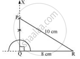 Construct the right angled ΔPQR, where m∠Q = 90°, QR = 8 cm and PR = 10 cm.