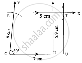 CUTE with `bar("CU") || bar("ET")`, CU = 7 cm, ∠UCE = 80° CE = 6 cm and TE = 5 cm