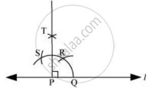 - Draw a line l and mark a point P on it. Now taking P as centre and with a convenient radius, draw an arc of a circle which intersects line l at Q.