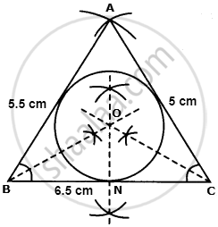 Contruct a ΔABC with BC = 6.5 cm, AB = 5.5 cm, AC = 5 cm. Construct the incircle of the triangle. Measure and record the radius of the incricle.