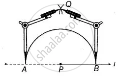 Step III: With A and B as centres and a radius greater than AP construct two arcs, which cut each other at Q.