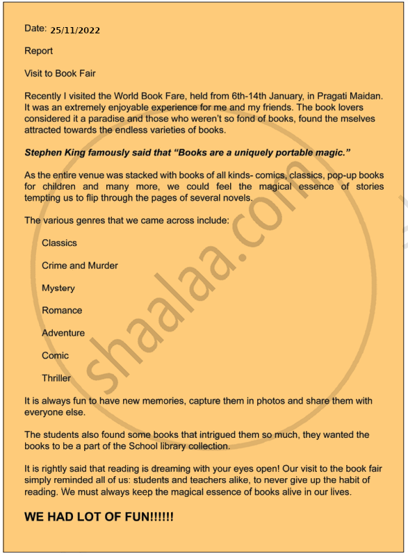 I started typing the text. After typing, his report looked.