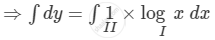 \[ \Rightarrow \int dy = \log x\int1 dx - \int\left[ \frac{d}{dx}\left( \log x \right)\int1 dx \right]dx\]
