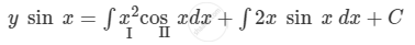 \[ \Rightarrow y \sin x = x^2 \int\cos xdx - \int\left[ \frac{d}{dx}\left( x^2 \right)\int\cos \text{ x } dx \right]dx + \int2x\sin \text{ x } dx + C\]