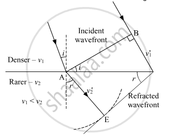 Define the term, "refractive index" of a medium. Verify Snell's law of refraction when a plane wavefront is propagating from a denser to a rarer medium.