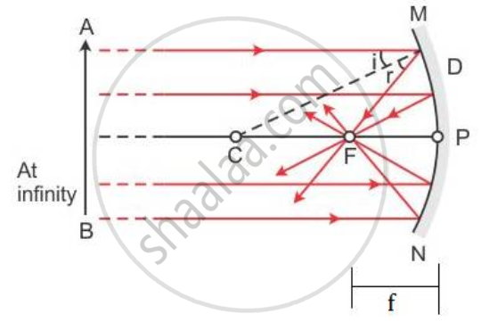 Focus of a concave mirror: The focus of a concave mirror is a point on the principal axis through which the light rays incident parallel to principal axis, pass after reflection from the mirror.
