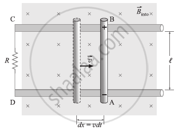 Assume that the rod is moved to the right by an outside force at a constant speed v that is both perpendicular to its length and to lB. The area of the loop ABCD grows by dA = ldx = lvdt as the rod travels over a distance dx = vdt in time dt.