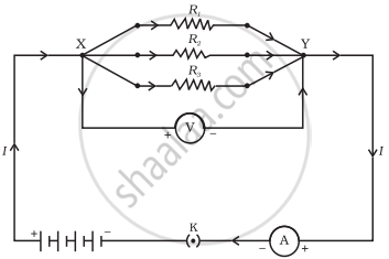 I = `V/R_1 + V/R_2 + V/R_3`