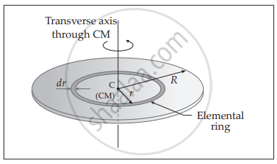 Obtain an expression for moment of inertia of a uniform disc of mass ‘M’ and radius ‘R’ rotating about an axis passing through its centre and perpendicular to its plane.