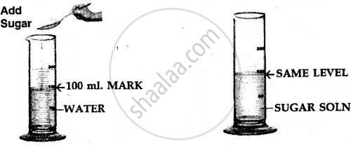 - The sugar particles fill the intermolecular spaces, which must be existing between the water molecules, and hence the level of water in the measuring cylinder does not rise.