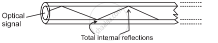 - An optical signal (a ray of light) entering the core suffers multiple total internal reflections before emerging out after several kilometres.