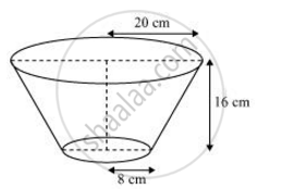 धातु की चादर से बना और ऊपर से खुला एक बर्तन शंकु के एक छिन्नक के आकार का है, जिसकी ऊँचाई 16 सेमी है तथा निचले और ऊपरी सिरों की त्रिज्याएँ क्रमश: 8 सेमी और 20 सेमी हैं। 20 रु प्रति लीटर की दर से, इस बर्तन को पूरा भर सकने वाले दूध का मूल्य ज्ञात कीजिए। साथ ही, इस बर्तन को बनाने के लिए प्रयुक्त धातु की चादर का मूल्य 8 रु प्रति 100 वर्ग सेमी की दर से ज्ञात कीजिए। [उपयोग π = 3.14]