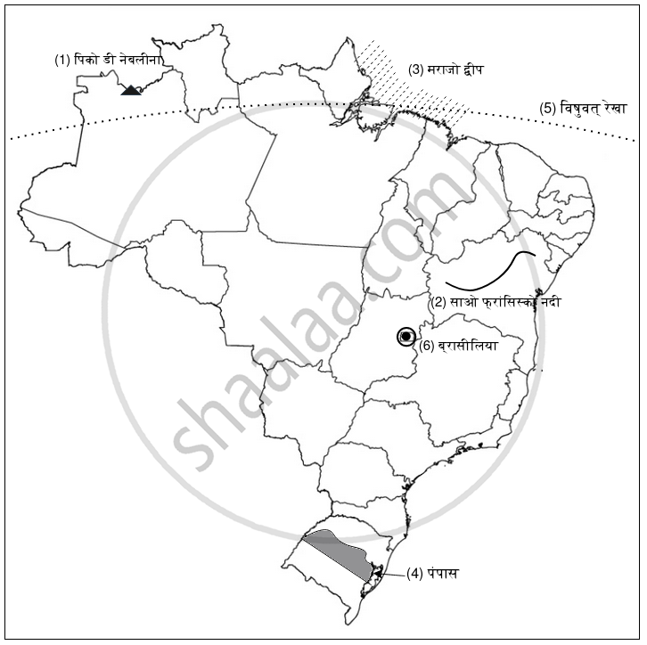 दिए गए ब्राज़ील के मानचित्र में निम्नलिखित को दर्शाइए, सूची बनाइए तथा नाम भी लिखिए: