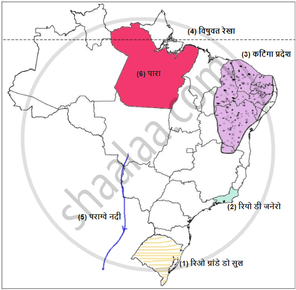 दिए गये ब्राजील के मानचित्र में निम्नलिखित को दर्शाइए, नाम लिखिए तथा सूची बनाइए: