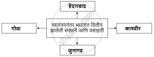 दिलेले संकल्पनाचित्र पूर्ण करा. स्वातंत्र्यानंतर भारतात विलीन झालेली संस्थाने आणि वसाहती - History [इतिहास]