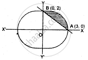 `= int_0^3 "y dx" ("दीर्घवृत्त के लिए") - int_0^3 "y dx" ("रेखा के लिए")`