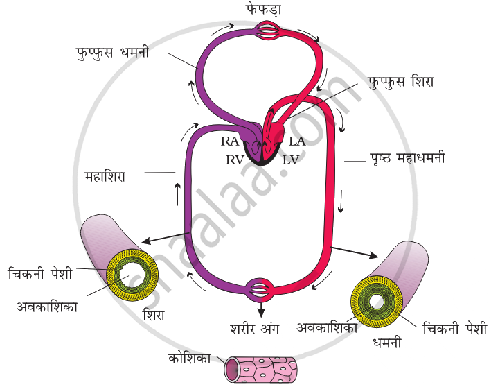 - यह रक्त ऑक्सिजनित होकर फुफ्फुस शिराओं के द्वारा वापिस ह्दय में बाएँ अलिंद में आ जाता है। जब बायाँ अलिंद सिकुड़ता है तो यह ऑक्सिजनित रक्त बाएँ निलय में आता है। जब बायाँ निलय सिकुड़ता है तो यह रक्त शरीर के विभिन्न भागों में महाधमनी के माध्यम से वितरित किया जाता है।