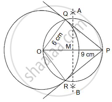 Draw a circle of radius 6 cm. Mark a point at a distance of 9 cm from the centre. Construct two tangents to the circle from this point. Measure the length of each tangent.