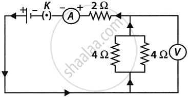 Draw a circuit diagram of an electric circuit containing a cell, a key, an ammeter, a resistor of 2 Ω in series with a combination of two resistors (4 Ω each) in parallel and a voltmeter across the parallel combination. Will the potential difference across the 2 Ω resistor be the same as that across the parallel combination of 4 Ω resistors? Give reason.