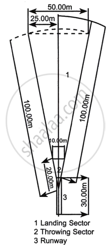 Draw a diagram of a javelin runway and sector with any three specifications. - Physical Education (Theory)