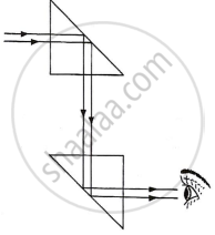 Draw a diagram to show how an image is produced by a pair of total reflecting prisms arranged as in a periscope.