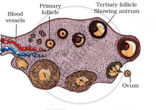 Draw a diagrammatic sectional view of ovary of human female and label the following: