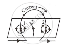 Draw a labelled diagram showing the three magnetic field lines of a loop carrying current. Mark the direction of current and the direction of magnetic field by arrows in your diagram.