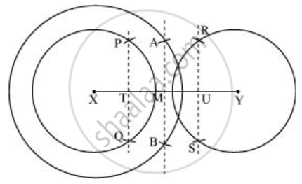 - Taking X and Y as centres, draw two circles with radius more than half of `overline"XM"`.