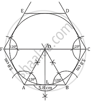 - With centre O and radius OL, draw a circle which touches the sides of the hexagon.