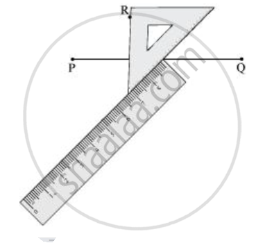 Place a set square on `overline"PQ"` such that one arm of its right angle aligns along `overline"PQ"`.