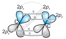 The two unhybridized 2p-orbitals of the first carbon undergo sidewise overlap with the 2p orbital of another carbon atom, thereby forming two pi (π) bonds between carbon atoms. Hence, the triple bond between two carbon atoms is made up of one sigma and two π-bonds.