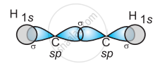 One sp orbital of each carbon atom overlaps with the other along the internuclear axis forming a C–C sigma bond. The second sp orbital of each C–atom overlaps a half-filled 1s-orbital to form a σ bond.