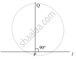 Draw line l. Take any point P on the line. Using a set square, draw a line perpendicular to line l at the point P.