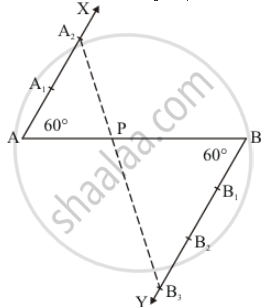 Step IV - Mark of two points `A_1, A_2` on AX and three points `B_1, B_2,B_3`on BY in such a way that `"AA"_1 = A_1A_2 = BB_1 = B_1B_2 = B_2B_3`