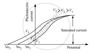 Plot showing the variation of photoelectric current with collector potential for different frequencies but same intensity of incident radiation