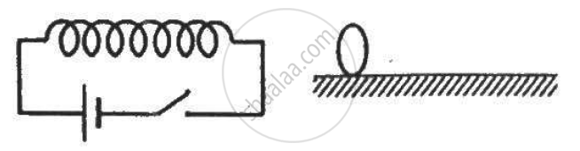 Figure shows a horizontal solenoid connected to a battery and a switch. A copper ring is placed on a frictionless track, the axis of the ring being along the axis of the solenoid. As the switch is closed, the ring will __________ .